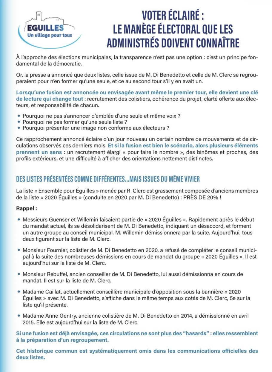 👉🏽 L’ensemble des écrits qui seront diffusés ici seront disponibles en lecture libre sur le site internet, ou encore en retrait-tract lors des plages d’ouverture de la permanence de campagne de l’équipe Avec Renaud Dagorne : Eguilles un village pour tous.